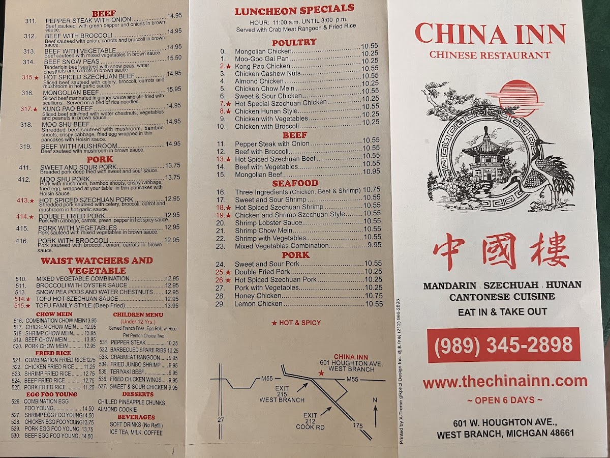 China Inn Restaurant offers a straightforward and comforting menu that captures the essence of classic Chinese cuisine in a relaxed setting. The menu features a mix of familiar favorites and hearty dishes, making it easy to find something satisfying whether you’re stopping in for a midday lunch or a casual dinner with friends and family.