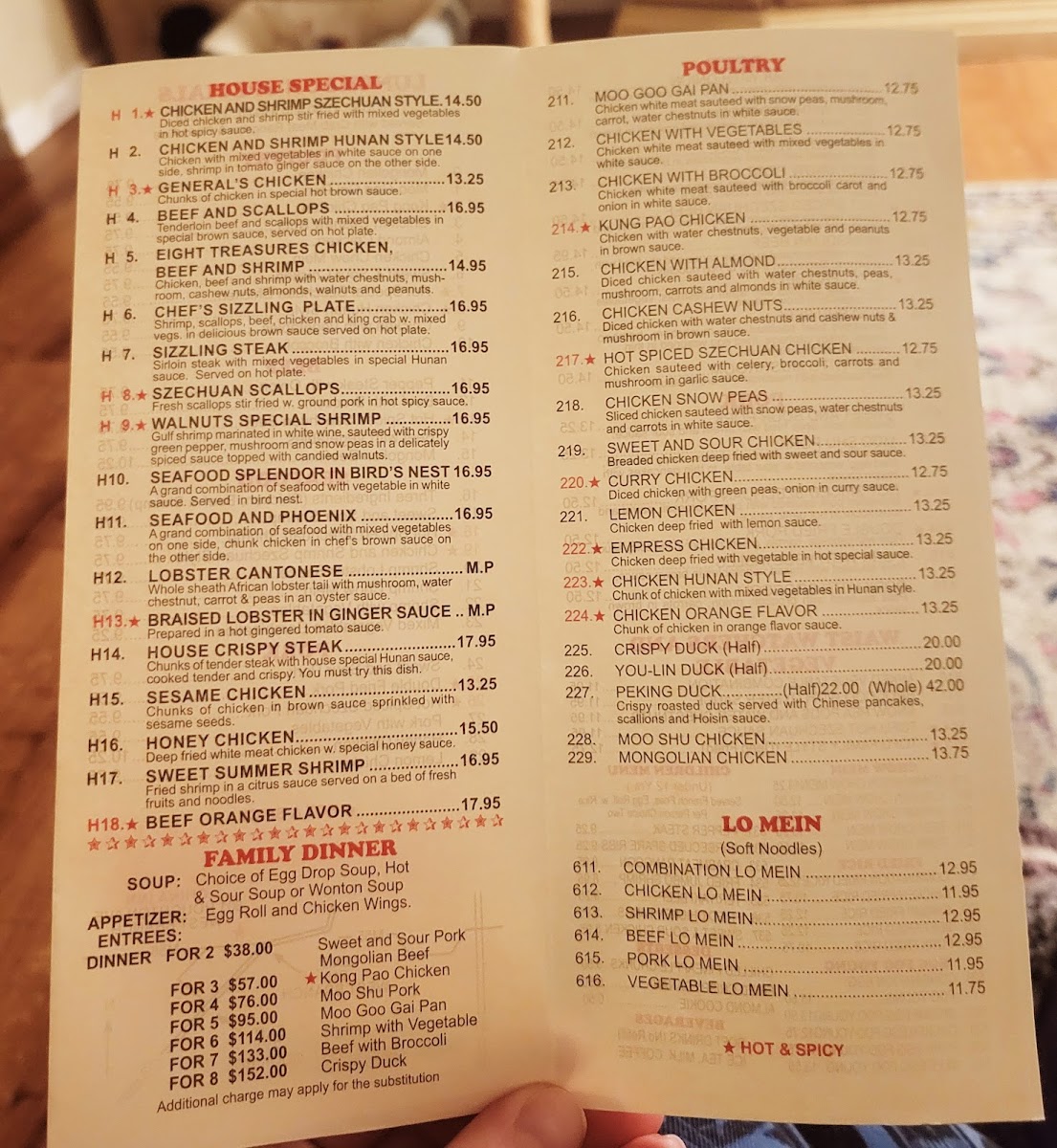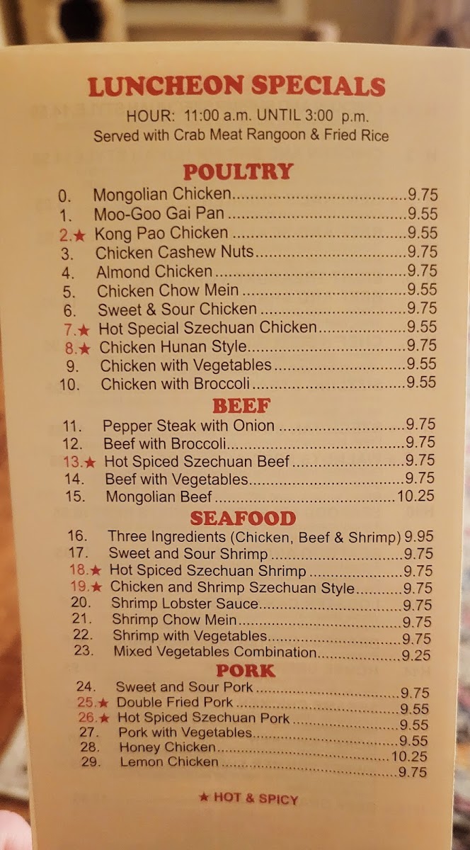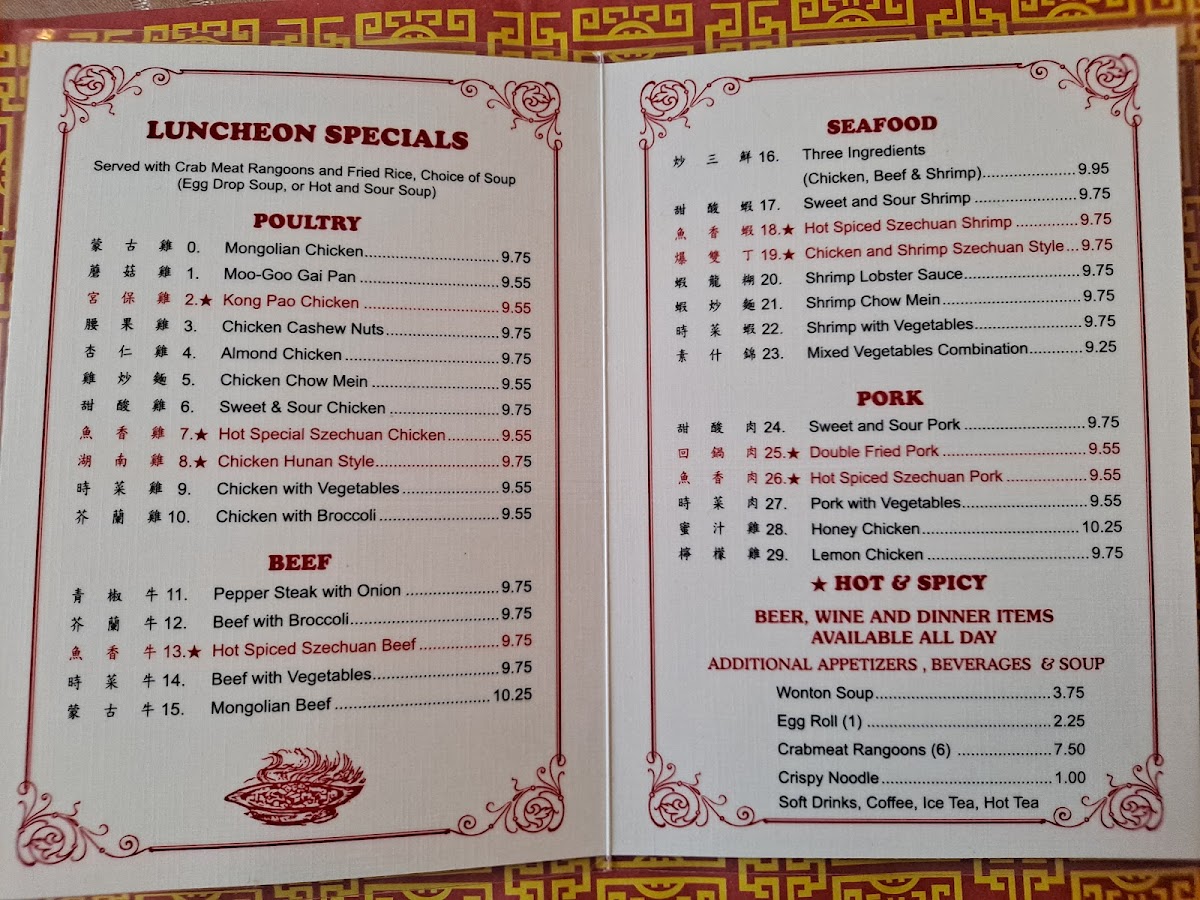 Guests often choose from a variety of luncheon specials like Mongolian Chicken or Hot Special Szechuan Chicken, which pair well with the restaurant’s calm and welcoming atmosphere. For those seeking something simple yet filling, options such as Chicken Fried Rice or Combination Lo Mein provide familiar flavors and generous portions.